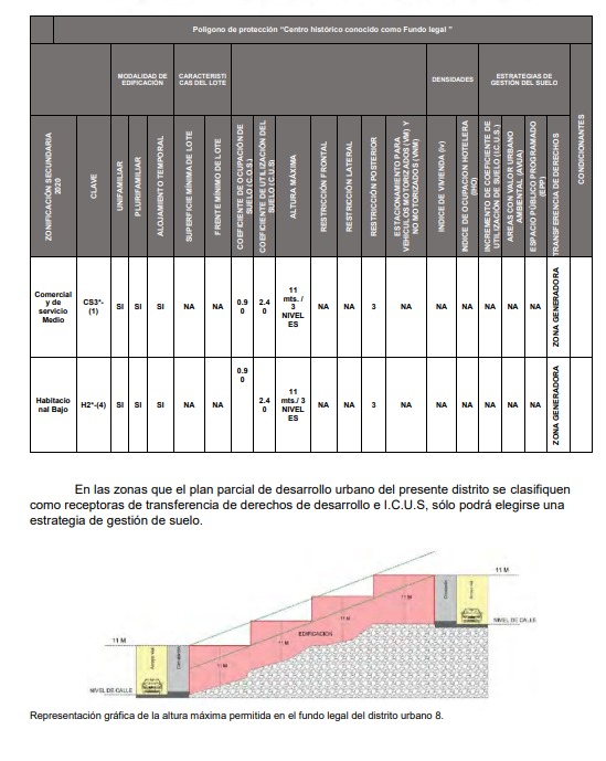 El Ayuntamiento otorgó una licencia de construcción número 5435/2024 por tres niveles (planta baja, primer piso y segundo piso) que es lo permitido en el área protegida denominada “Fundo Legal”, pero actualmente están construyendo un cuarto y quinto nivel y así lo están promoviendo en páginas de bienes raíces.