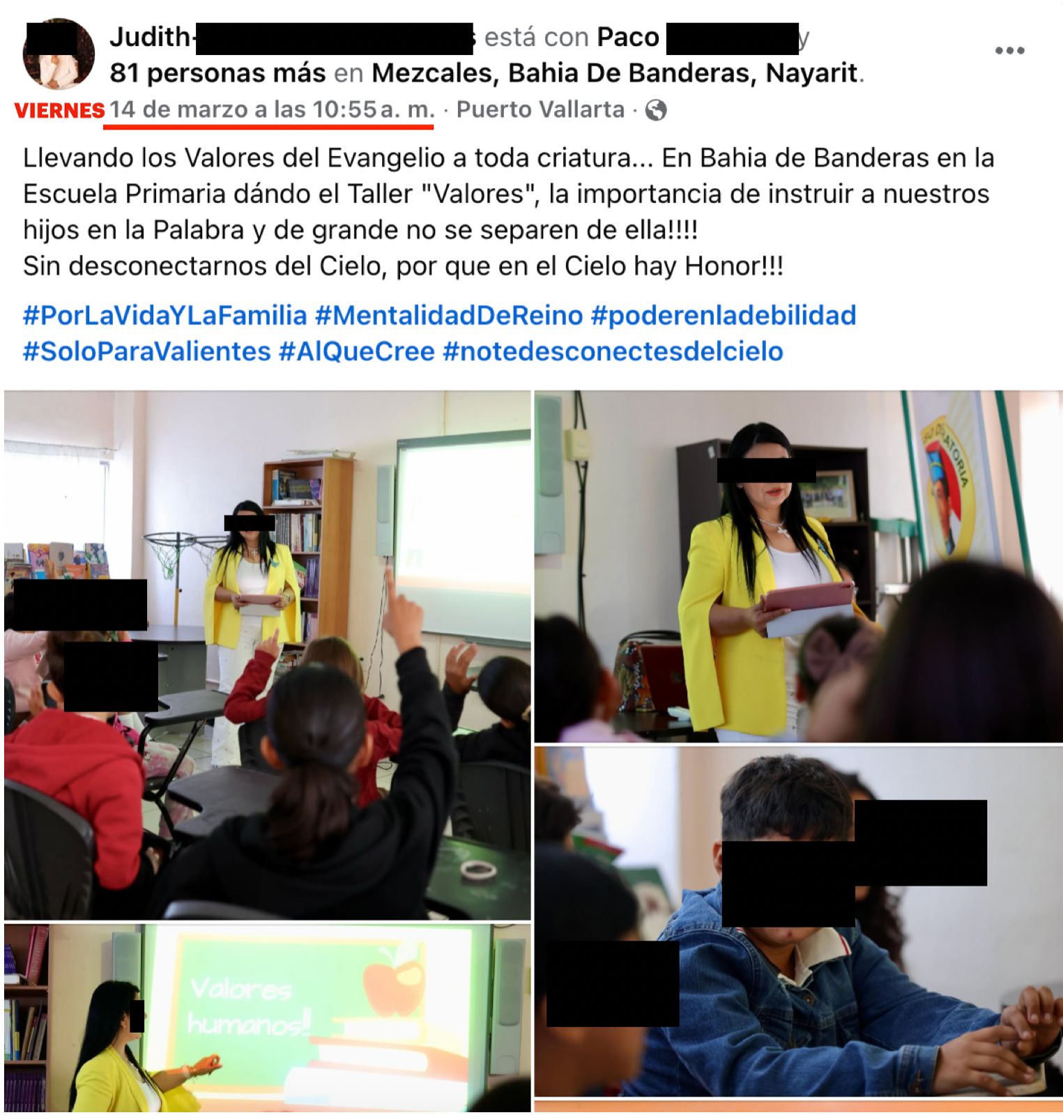 También se señala que hace difusión de contenido religioso y político a través de sus redes sociales, vulnerando con ello el principio de laicidad del estado.