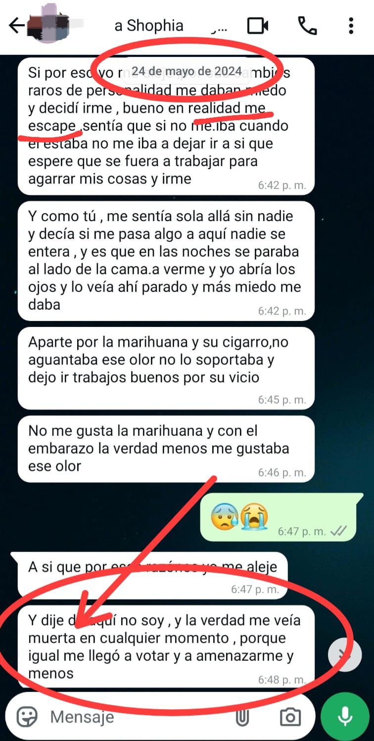 Olga María fue pareja de Juan Pablo durante casi tres años y tuvieron un hijo. Están separados desde el 11 de marzo del 2024; no obstante, en entrevista comentó que continuamente éste ha violado las medidas cautelares impuestas a raíz de una denuncia por violencia familiar, de la que él obtuvo la suspensión condicional del proceso.